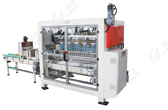 自動旋蓋機具有自動理蓋、上蓋、旋蓋功能。瓶子直線進入、連續旋蓋。