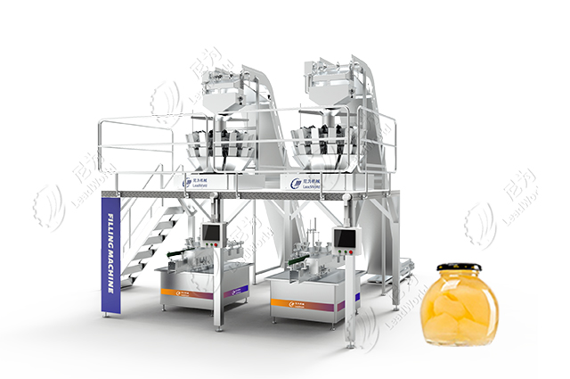 罐裝的時候,同一個罐子選用果肉大小一致、色澤、成熟度大致均勻的果肉。梨球、梨塊可選用多頭稱自動固型物裝罐機裝罐、梨丁可選用丁料裝罐機裝罐。